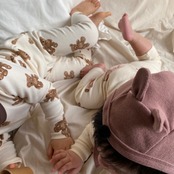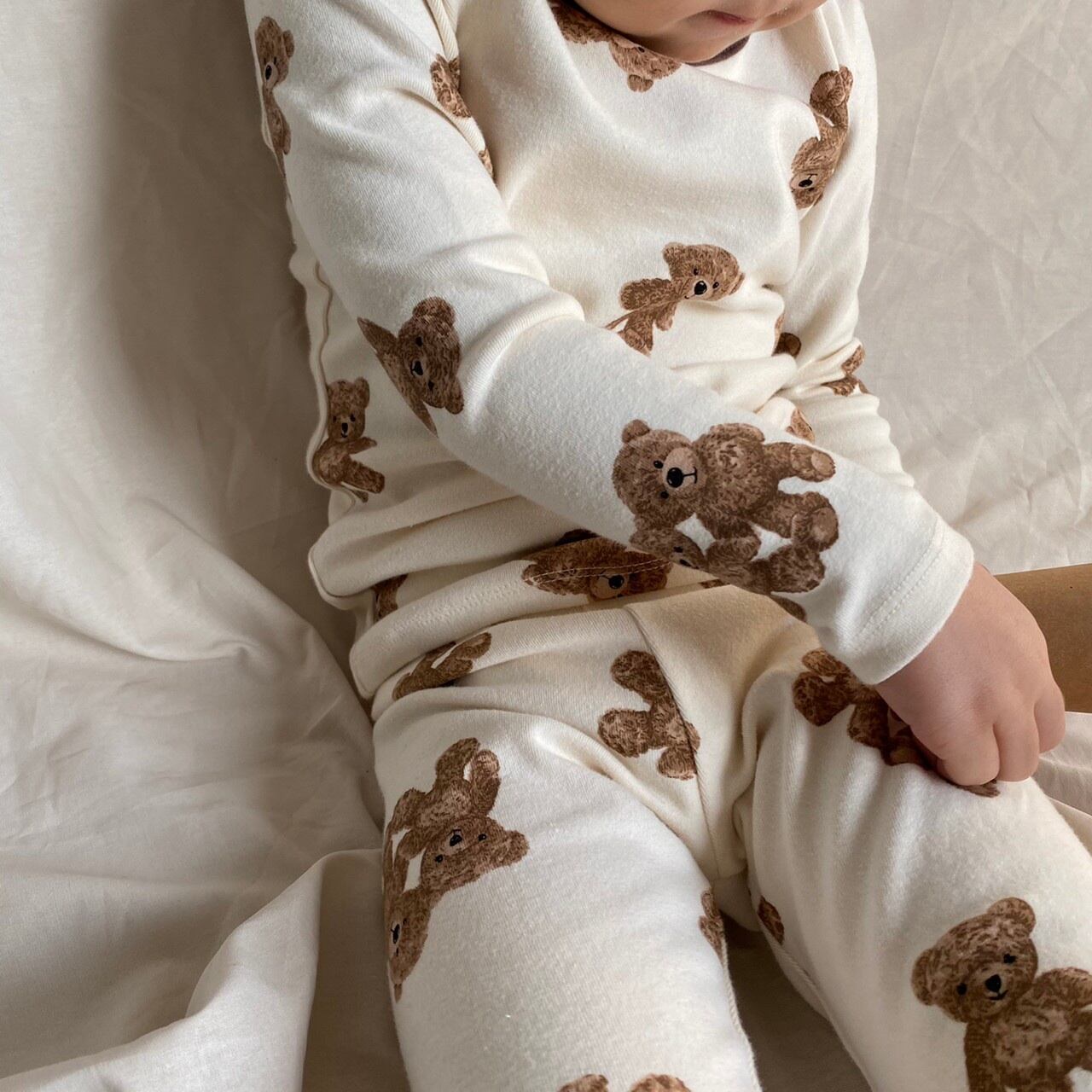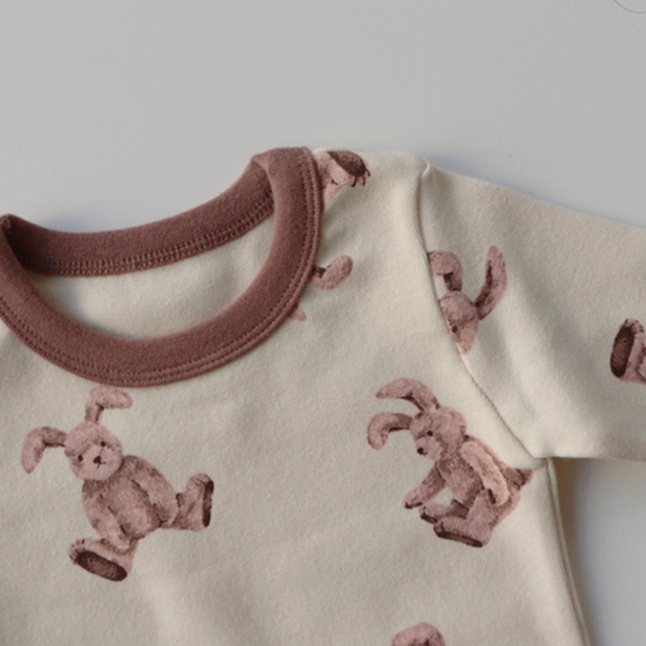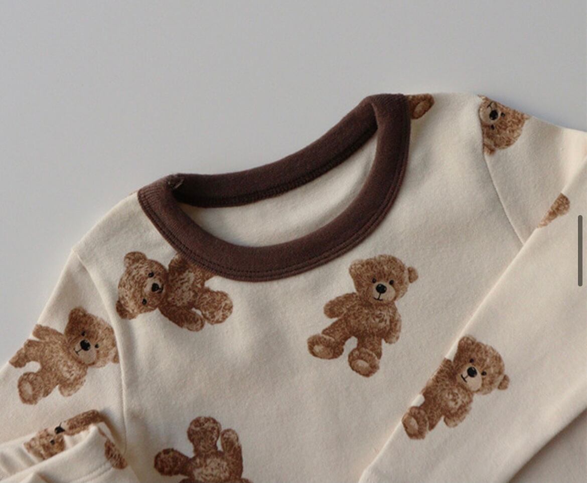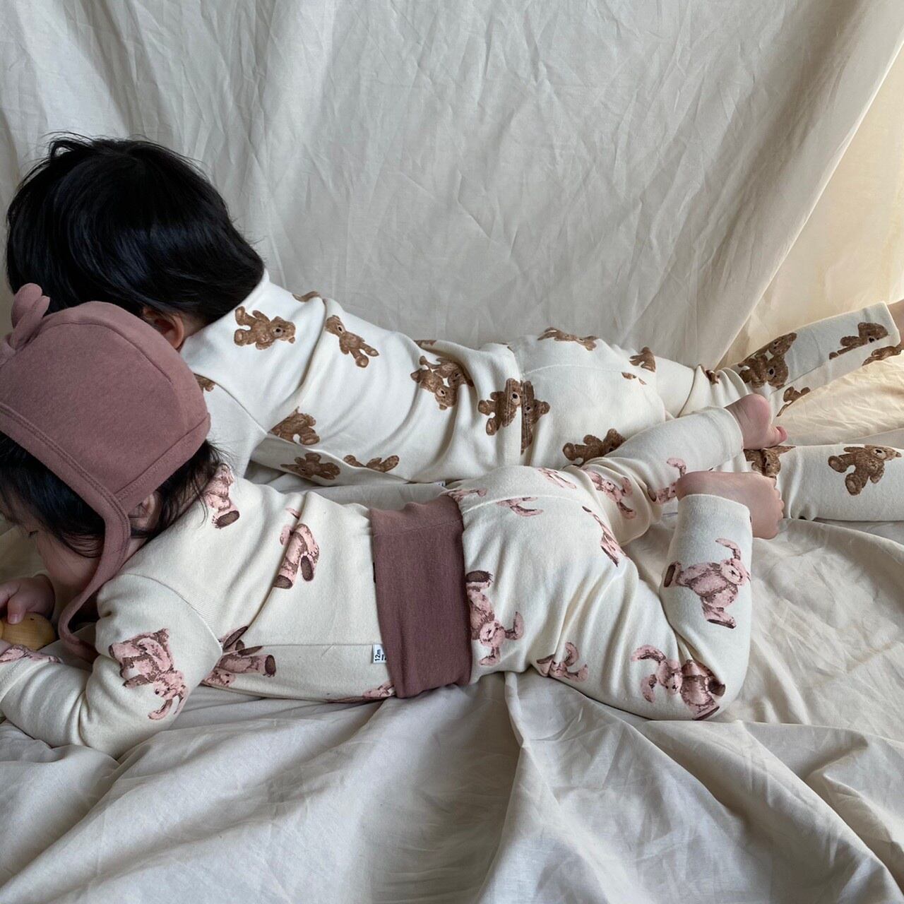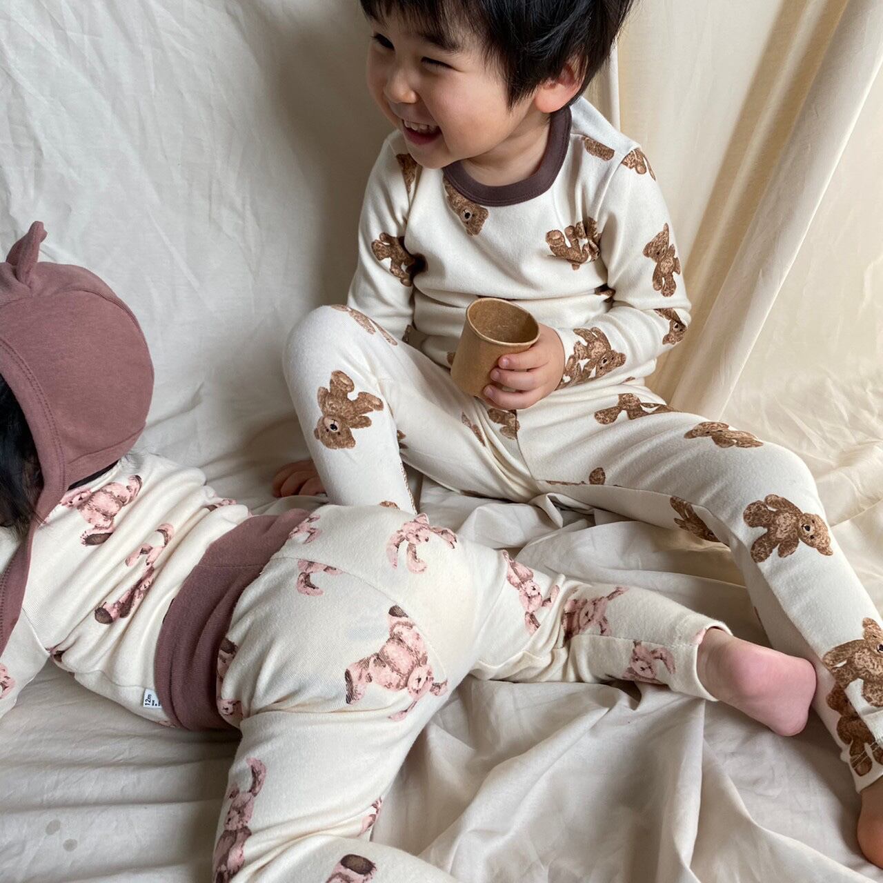 同デザインのrompers +pants setや